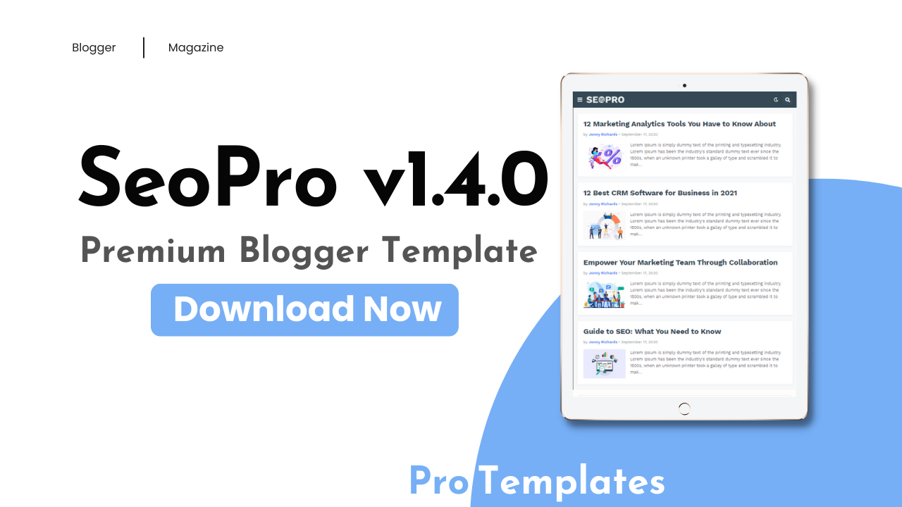 SeoPro - Premium Blogger Template is a professional and fully customizable blogger theme Free Download. SeoPro is a very optimized and fast blogger paid template Free Download. SeoPro is very easy to configure and has unique features that do not require editing any line of code SeoPro - Premium Responsive Blogger Template Free Download.
